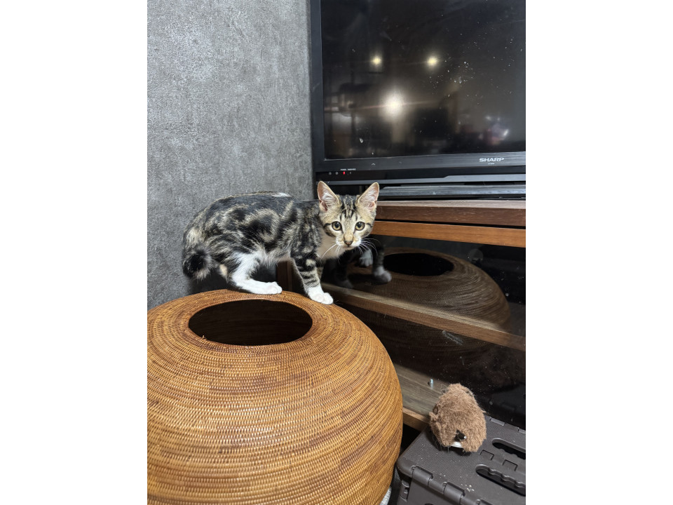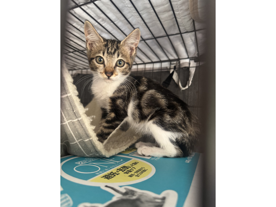島のTNR中保護。小さく弱弱しいこの子をこの暑さの中外には置いておけないと保護。
