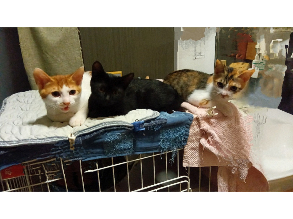 エサやりのおじいさんの不妊手術のお手伝いしていた所で、外生活の母猫と子猫3匹。母猫は手術後、元の場所へ戻し、子猫たちは、まだ幼いので保護しました。新しいあたたかい家族の一員になってくれる人を探します。出来れば、きょうだいで一緒にが希望です。