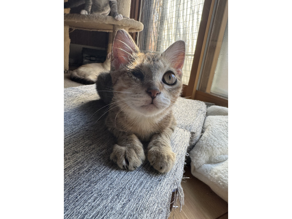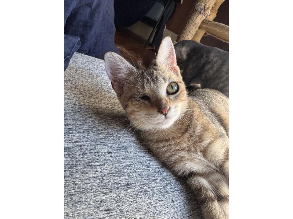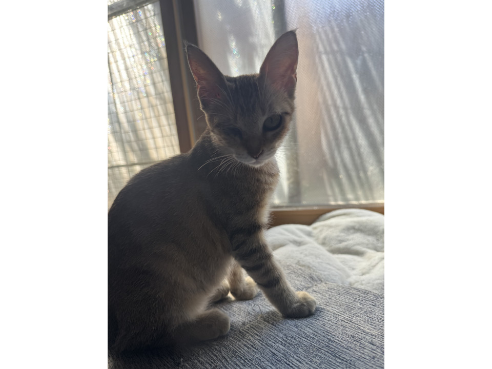 TNR現場にいました。目がひどい状態で、治療のため保護。人馴れもしていて、里親はん探しをすることにしました