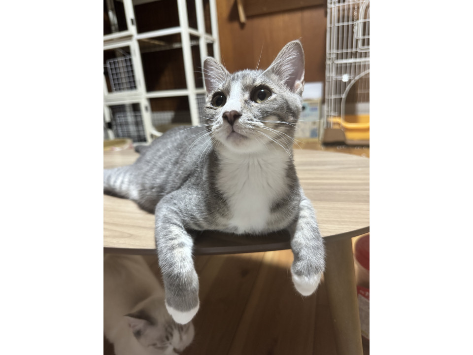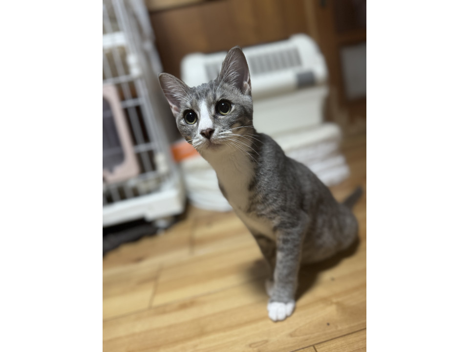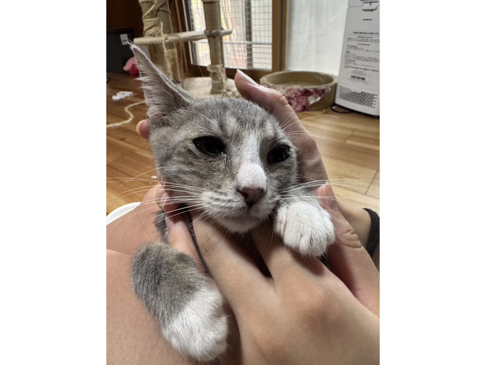 TNR現場にいました。目がひどい状態で、治療のため保護。人馴れもしていて、里親はん探しをすることにしました