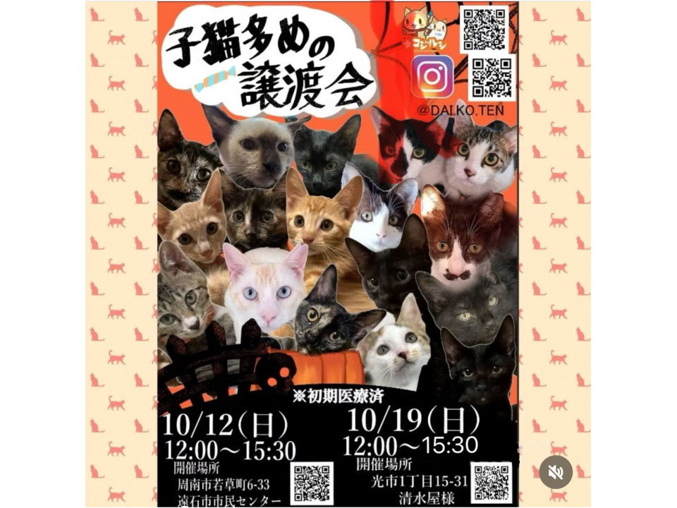 【10月19日光市「清水屋」様での譲渡会に参加予定です。】
