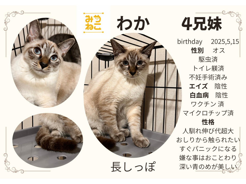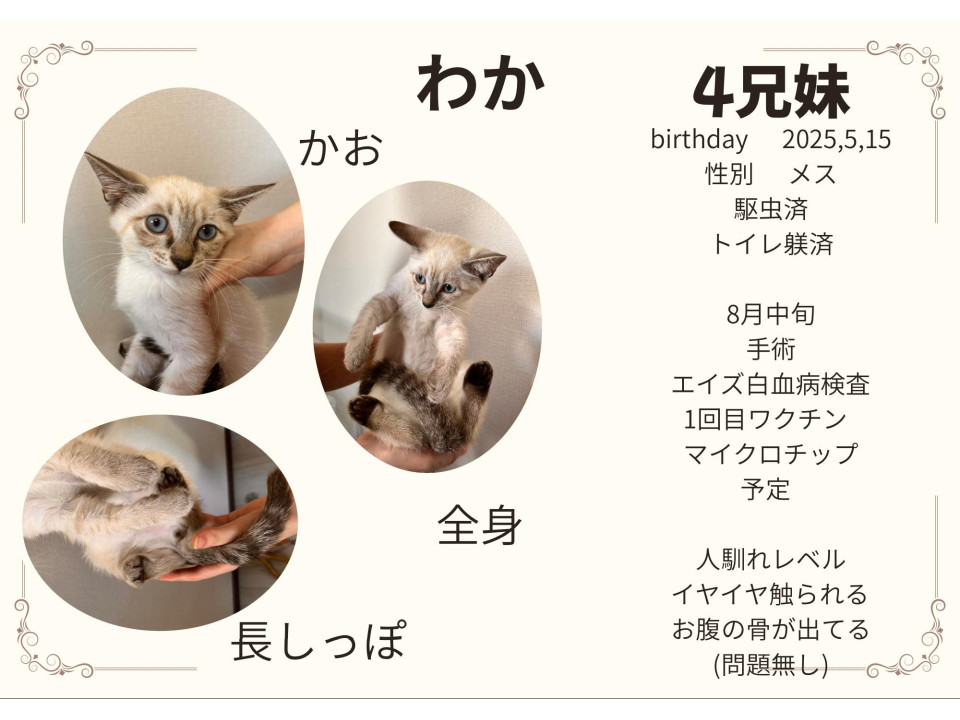 シャム、短毛、人馴れ修行中、シャーのみ、触れる、抱っこOK