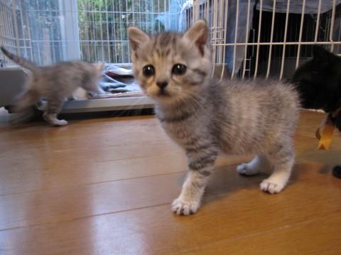 性格はおとなしめですが、他の子とは活発に遊びます。とても人なつこくなでるとごろごろ言ってくれ、ちょこまか後をついてきます。