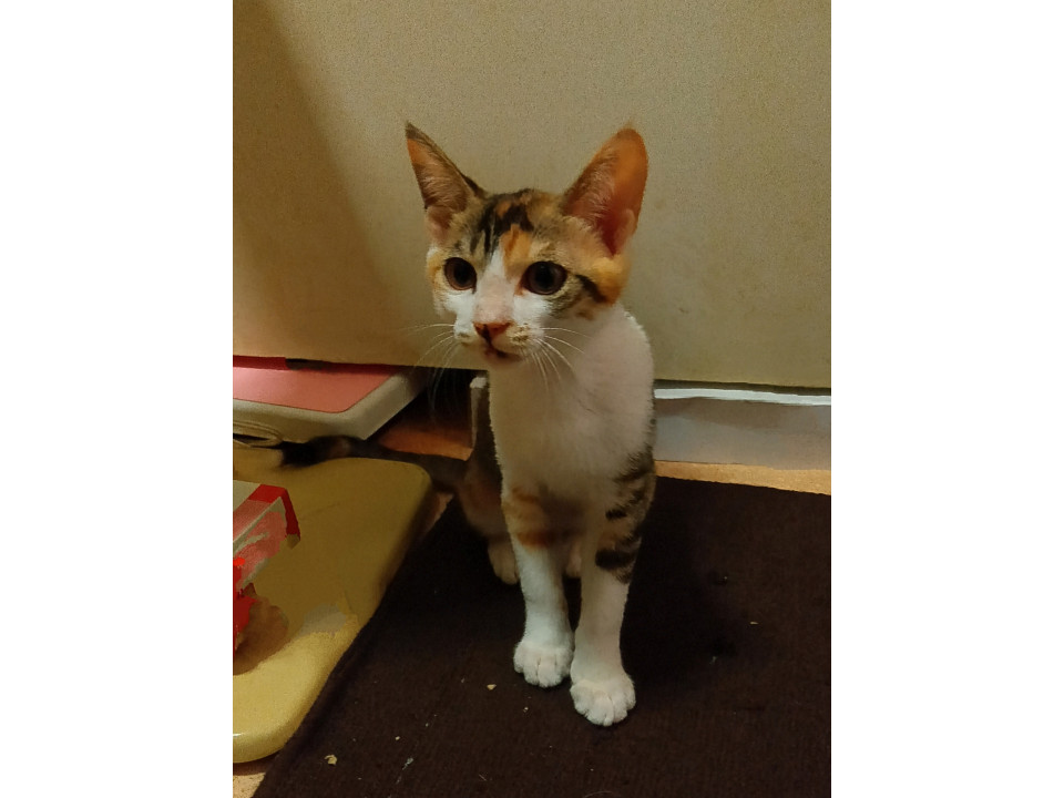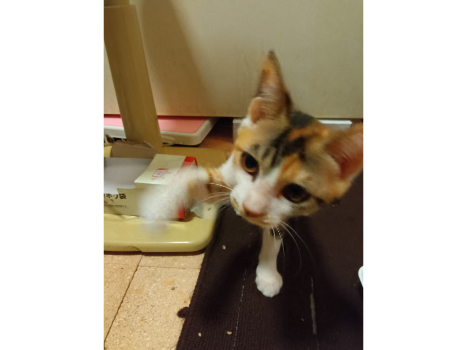 保護時より、人前でごはん、トイレも出来るので、すぐに人になれると思いますが、しばらくはケージ飼いでお願いします。
