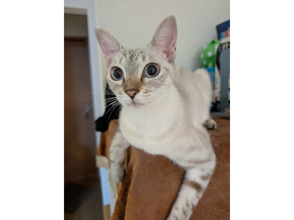 青い目、シュッとしたお顔、シャムミックスの美猫(ΦωΦ)♡ うちが預かって数日でスリスリゴロゴロ…まだまだ甘えたい1歳猫ちゃんです(^^)