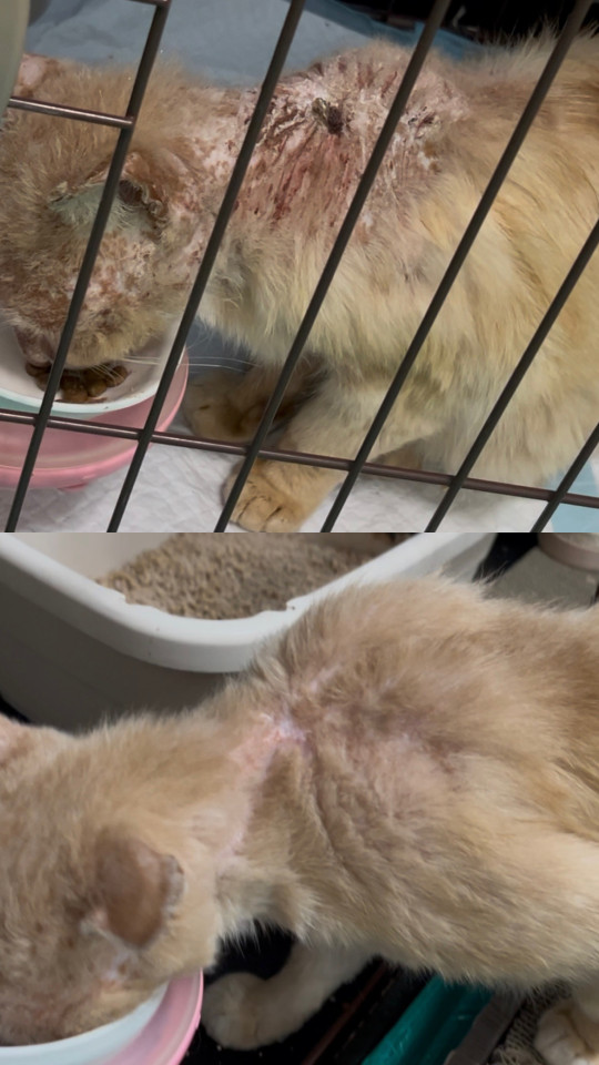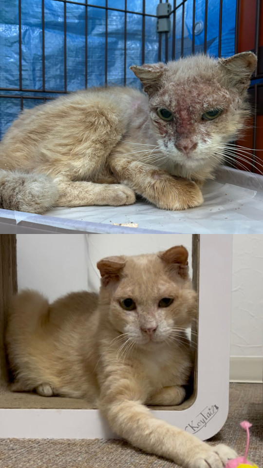 ガリガリに痩せ細っていて、皮膚病だけではなく飢えや喉の渇きとも戦っていたようです。