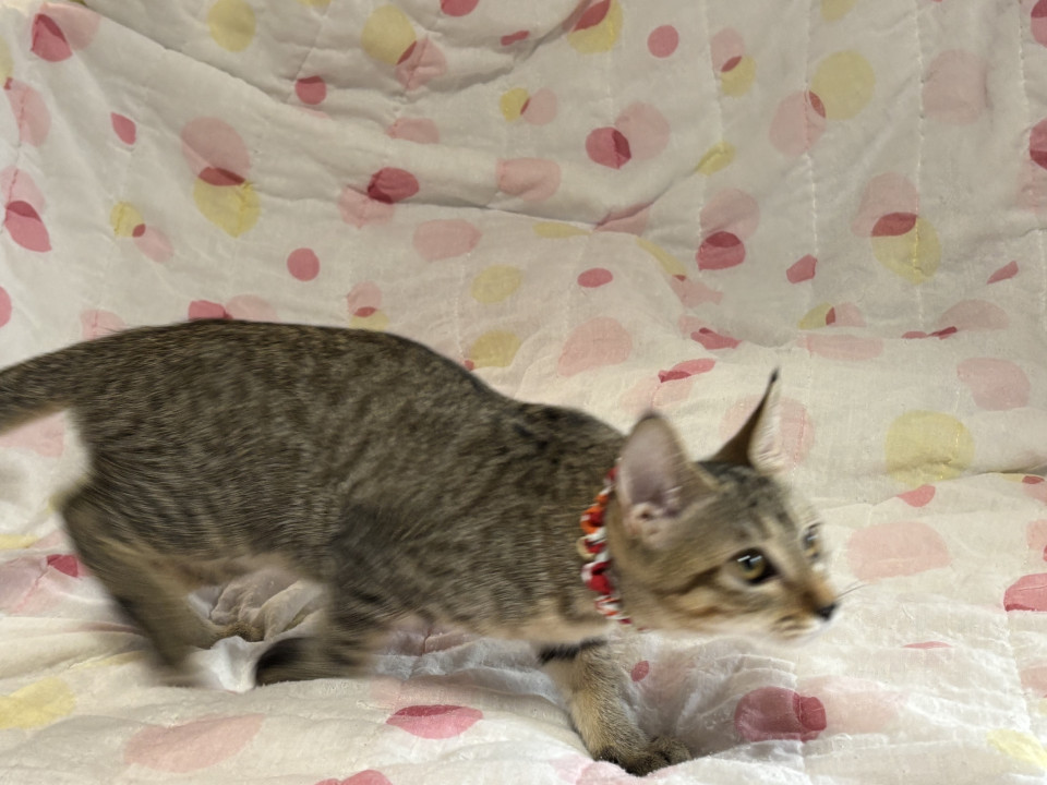 生後2ヶ月半から3ヶ月の女の子。三種ワクチン接種2回目済み、バイコックス予備駆虫済み、ドロンタール予備駆虫投薬済み、ブラベクト滴下済み、検便済み、猫免疫不全・白血病共に陰性