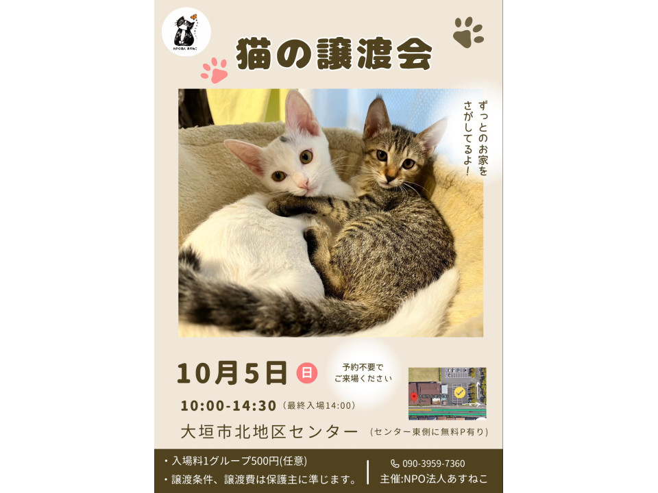 岐阜県内のへの譲渡の場合は交通費一律1000円(高山市のみ北陸と同一交通費)・滋賀県・愛知県の地域への譲渡の場合は交通費一律5000円のご負担をお願いします。