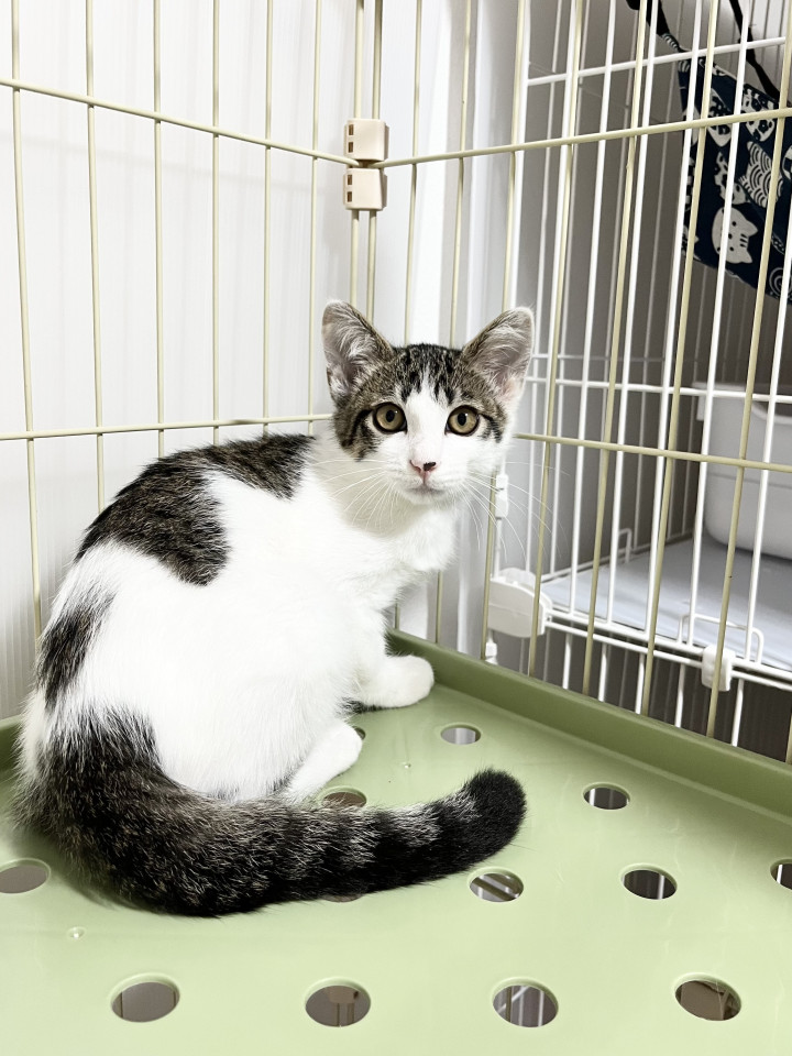 まだスリゴロとまではいきませんが、人への恐怖心は薄く、ナデナデはできるので、これから人馴れ進んでいくと思います!