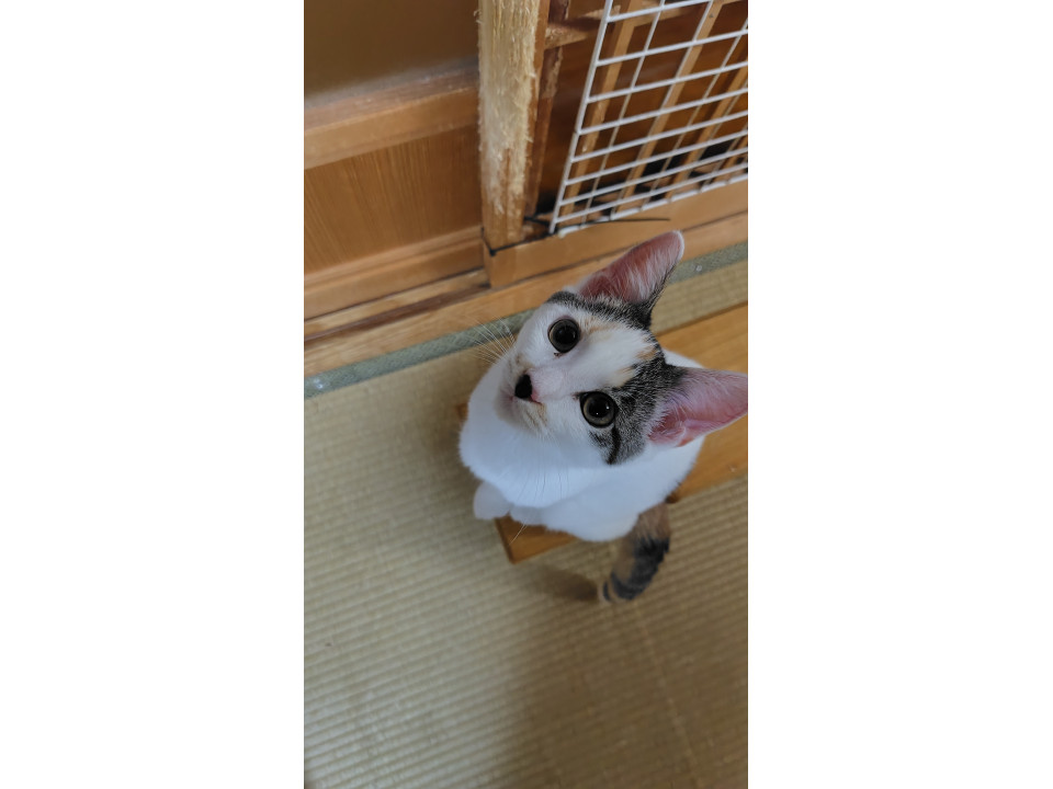 隔離期間を経てうちの子と一緒にしていますが、子猫ですので物怖じせずみんなと仲良くしています、先住さんがいらしても大丈夫です。