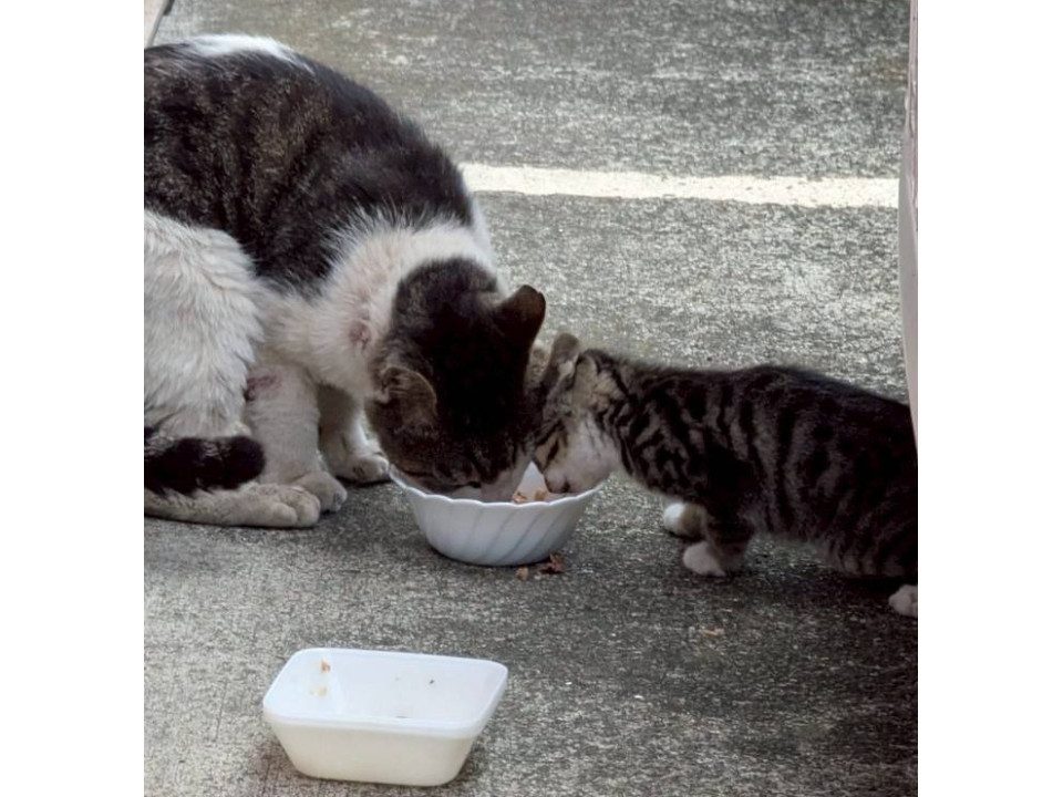 子猫を守る逞しいパパ猫さんで、子猫3匹はは譲渡となりました。