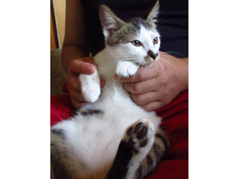 おとなしい性格で人馴れ十分、抱っこするとすぐにゴロゴロいいます。他の猫さんにもフレンドリー。