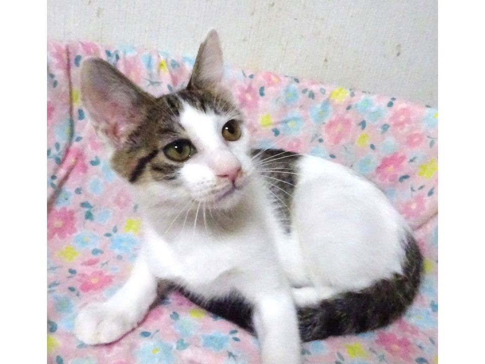 駅近くの商業施設に突然、子猫だけで現れたようです。 ガードマンが水だけはあげていたようですが、餌がないので、保護しました。