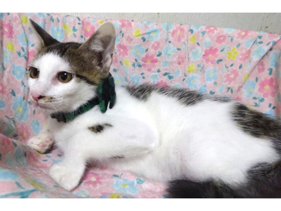 駅近くの商業施設の駐車場に突然子猫だけで現れました。ガードマンさんが水だけあげていましたが、餌をあげる人がなく、母猫もいないようでしたので保護しました。