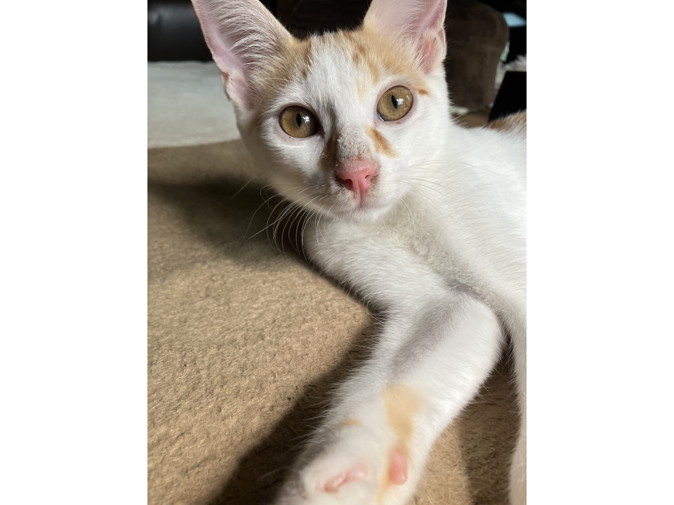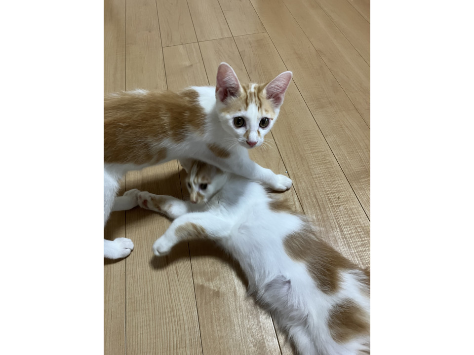 生後1ヶ月程の小さな身体で人間にも慣れ、動くものには猪突猛進!人でも車でも全く怖がりませんでした。飛び出して危ないので緊急に5匹(男の子3匹、女の子2匹)を保護。哺乳瓶が苦手なのか5匹ともシリンジで3時間おきにミルクを与えました。昨年から地域猫活動も行なっており、外猫ちゃんのお世話もある事から、愛情深く可愛がって頂ける方に託したいと思い募集しました。