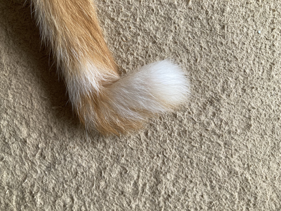 短毛と長毛の真ん中の毛並みでふこふこです。鼻の両脇にハノ字に茶色が入っているのがチャームポイント!先端が直角に曲がったカギしっぽは幸せを掴んで離さないと言われています。爆音ゴロゴロ鳴らしながら、ふみふみが得意な甘々な男の子です!