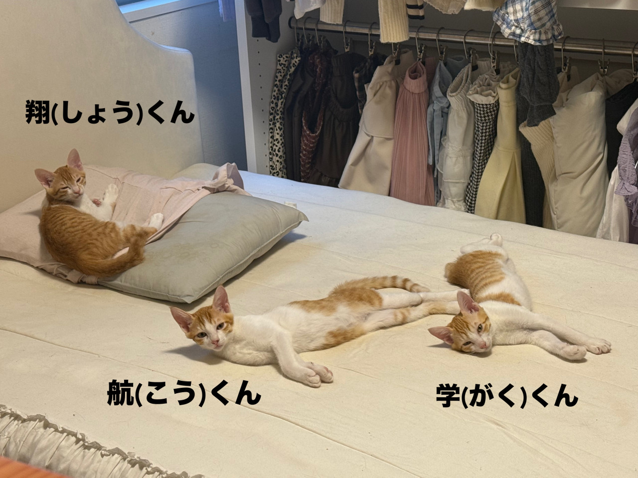 3兄弟、ぜーんぶ茶白の男の子。(しょうがくこう兄弟)