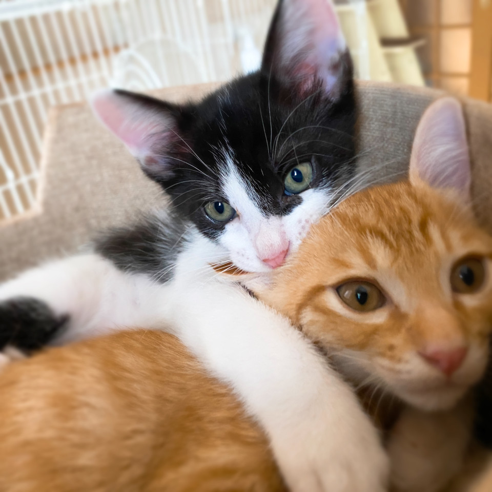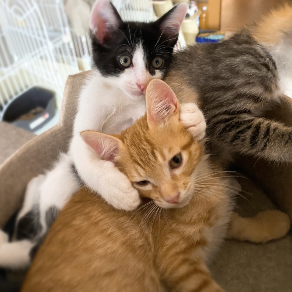 当初他の猫を見ると『シャー』と言っていましたが、今は兄弟以外の子猫とも仲良く遊んでいます。