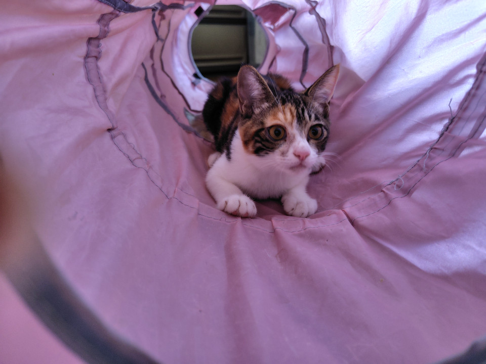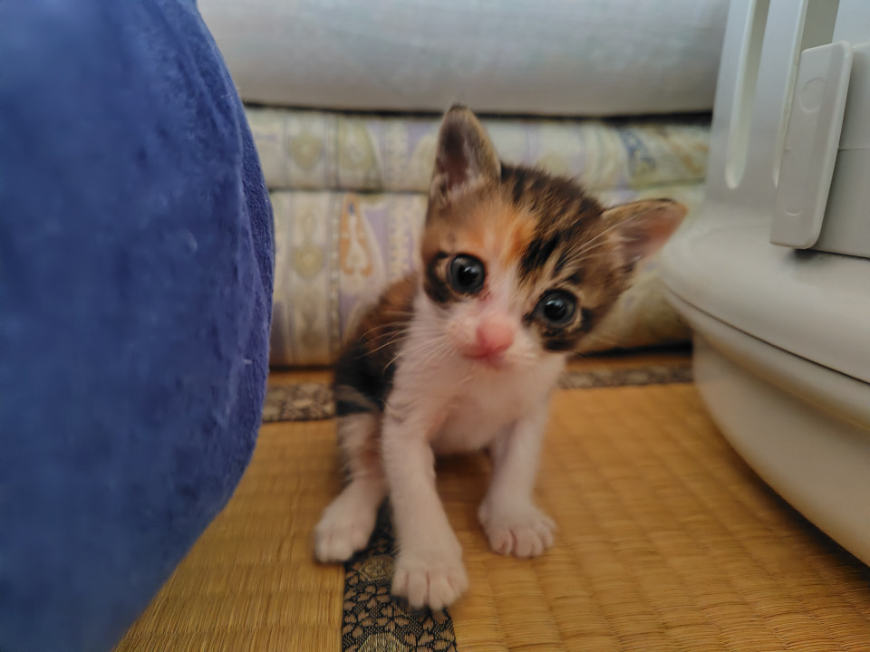 別の預かりさんと3頭ずつ保護したうちの1頭がめいです。