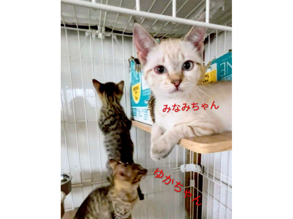 ゆか、みなみ、マオマオちゃんは同じ預かり宅で過ごしています。