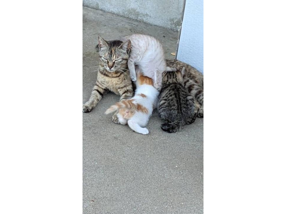 餌やりさん宅庭にて3匹の母猫が次々に出産した現場の子猫。