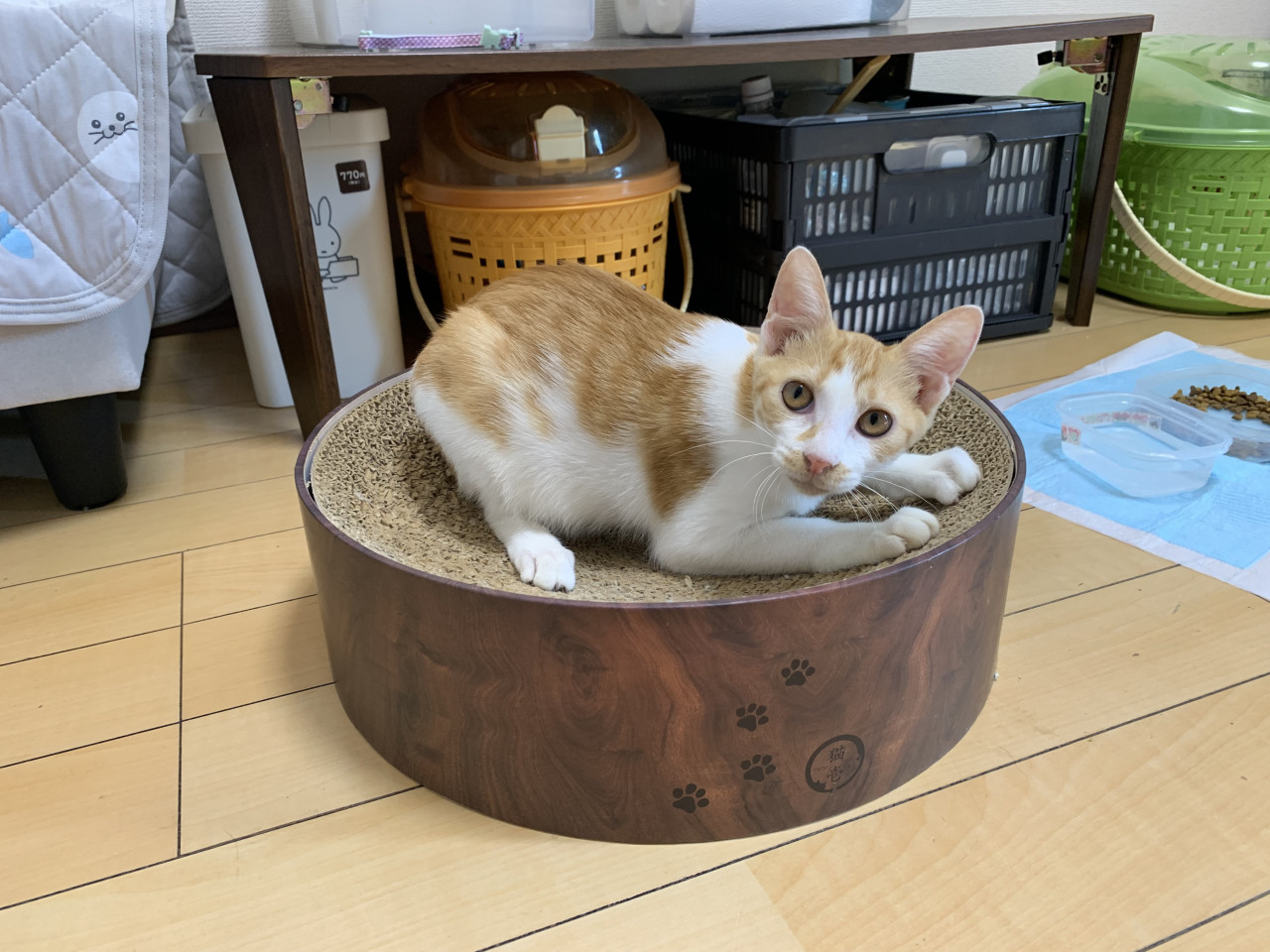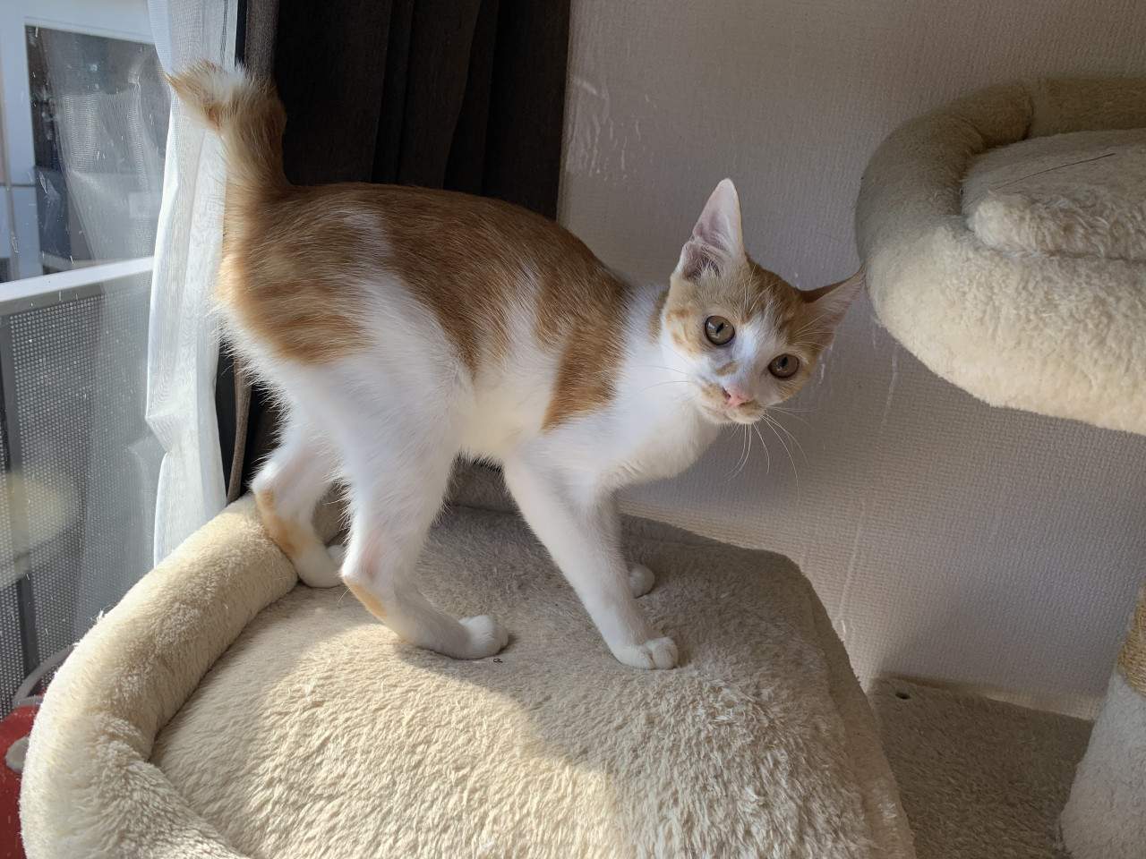 大人しく穏やかでキャットタワーで寛いでいることが多いです。