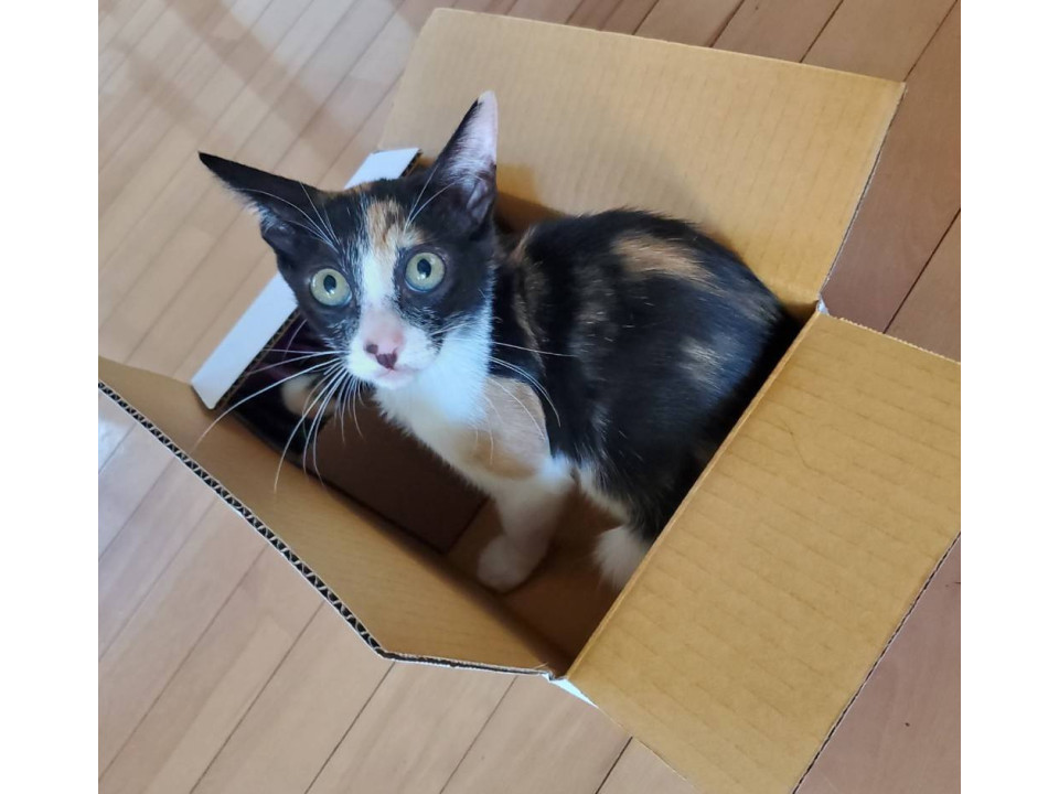 ○生後4ヶ月半くらい(2025年9月下旬時点)の黒多め三毛の女の子です。