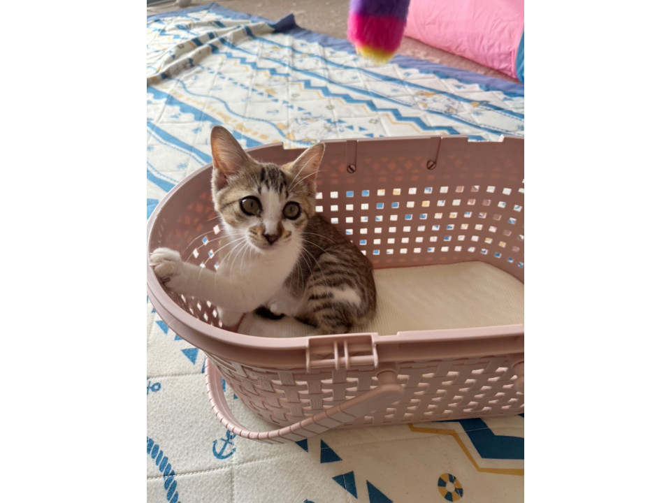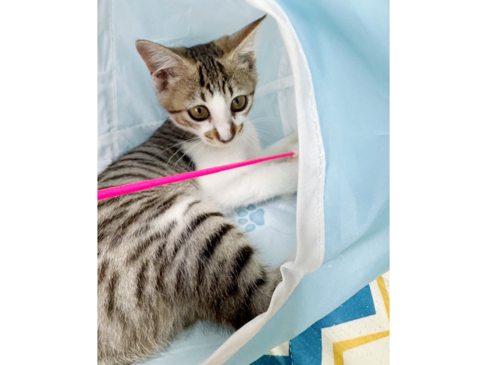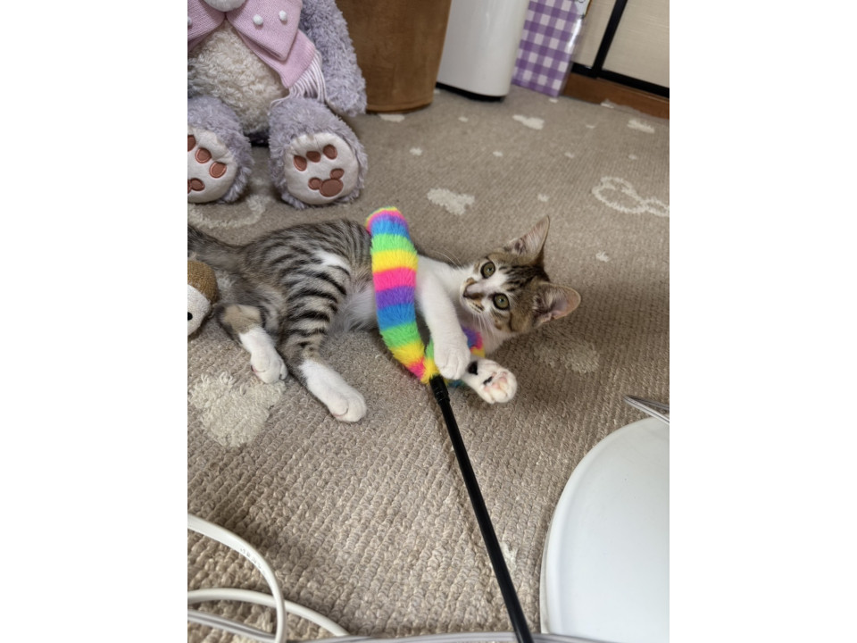 人が大好きな、とっても甘えん坊の女の子。遊んでいるとすぐにゴロゴロと喉を鳴らし、安心するとお腹を見せてへそ天ポーズになっちゃいます。初めて会う人にもフレンドリーで、撫でてもらうのが大好き。他の猫ちゃんともすぐに仲良くなれるアピール上手で、遊びも甘えも全力で楽しむ愛らしい子です。