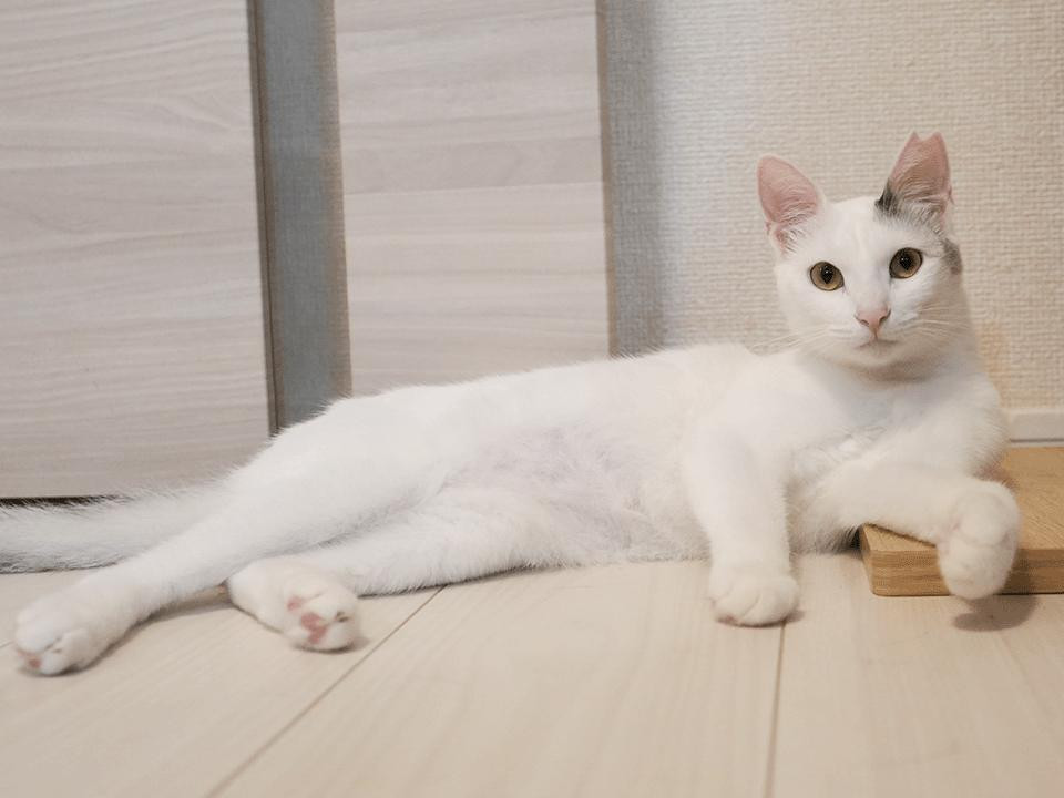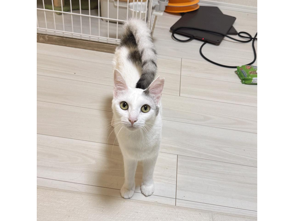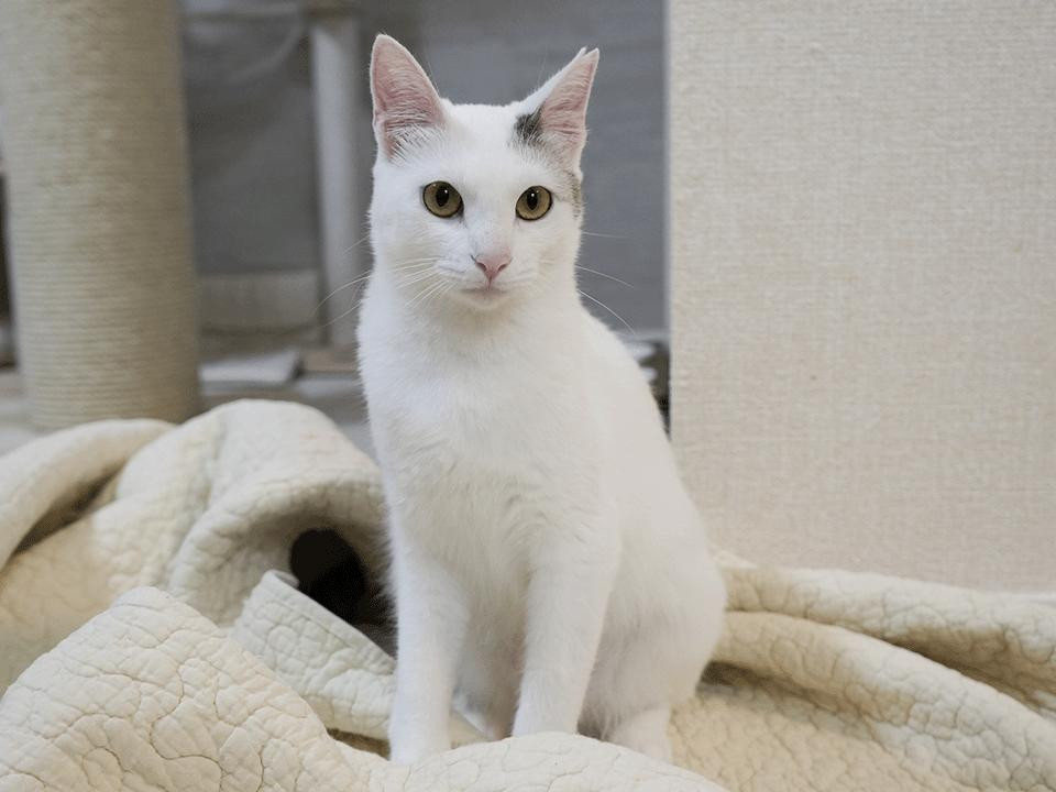 真っ白な毛並みが美しい、見た目もかわいい猫さんです。