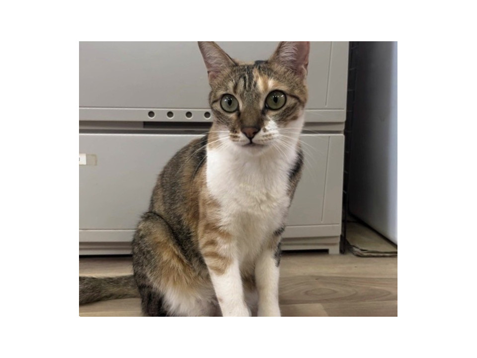 大きなおめめと、顔半分にかかる茶色い色柄がとてもキュート!