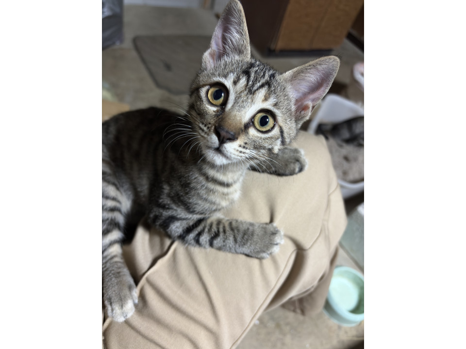 生後1ヶ月の頃、猫同士の喧嘩の声が聞こえた次の日から母猫が帰ってこなくなったとのことです。