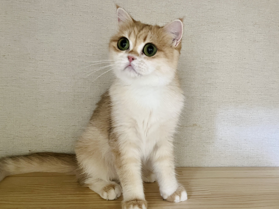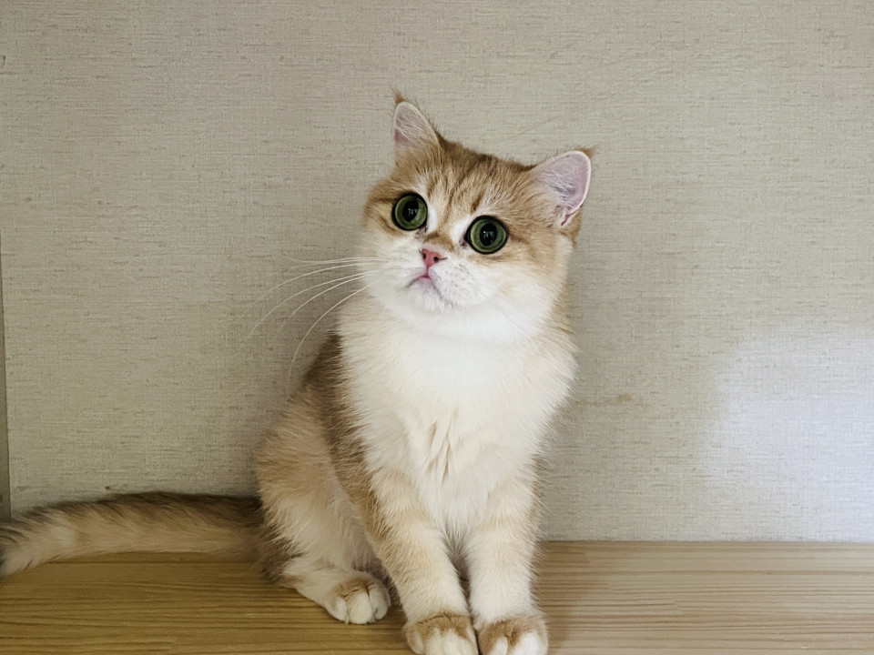 最初は少しシャイで人見知りするかもしれませんが、時間をかければゆっくり慣れてくれます。マイペースで穏やかな性格です。大きな丸い目がチャームポイントで、とても可愛い子です。