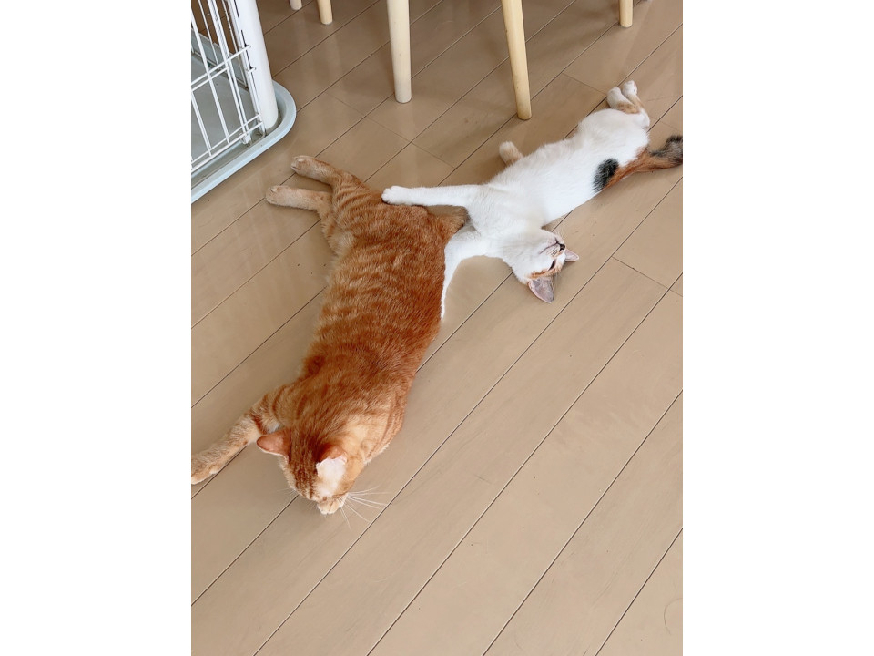 よく長〜くなって寝ていてお腹を撫でずにはいられません!