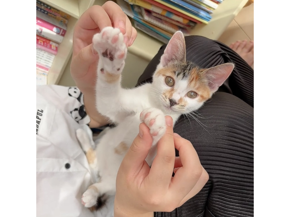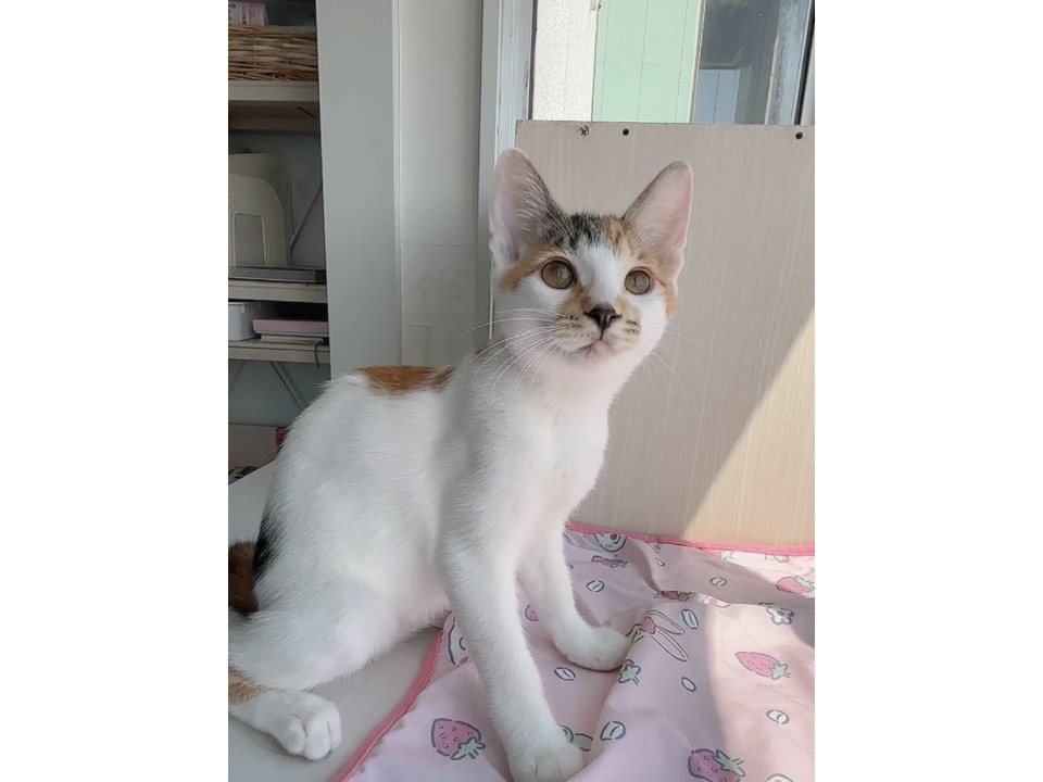 野良猫の集まる場所に突然あらわれた母猫不明の謎の子猫です。野良を一人でさまよい、誰かに甘えたかったらしく捕獲時から非常に人懐っこく大人猫にシャー言われても甘えにいくほどでした。