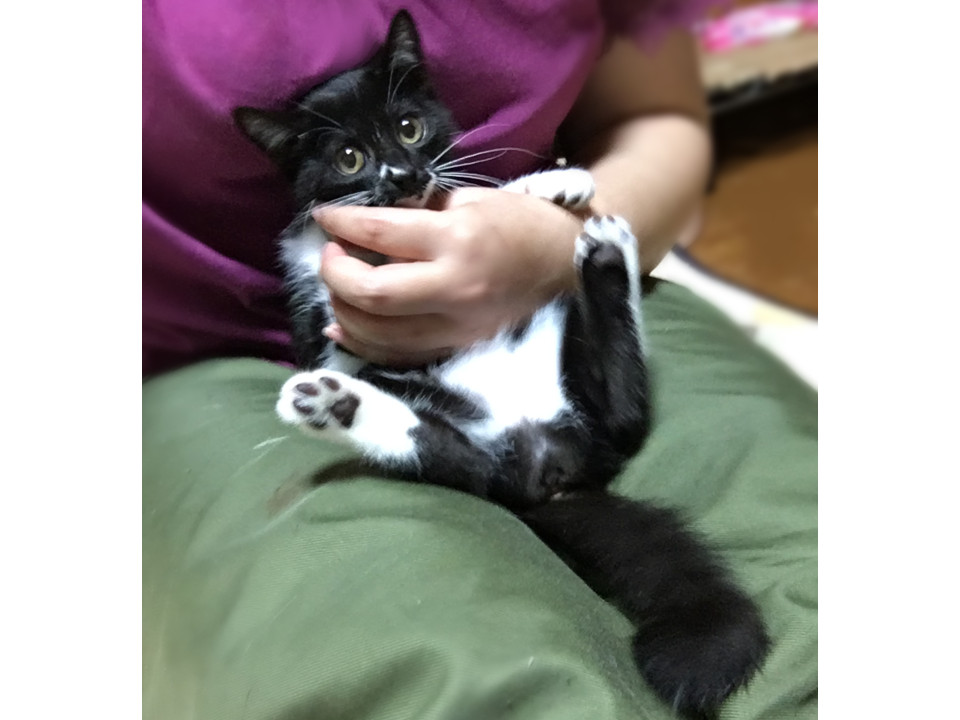 人なつっこくて甘えん坊。保護した時期が早かったので、とてもよく懐いています。