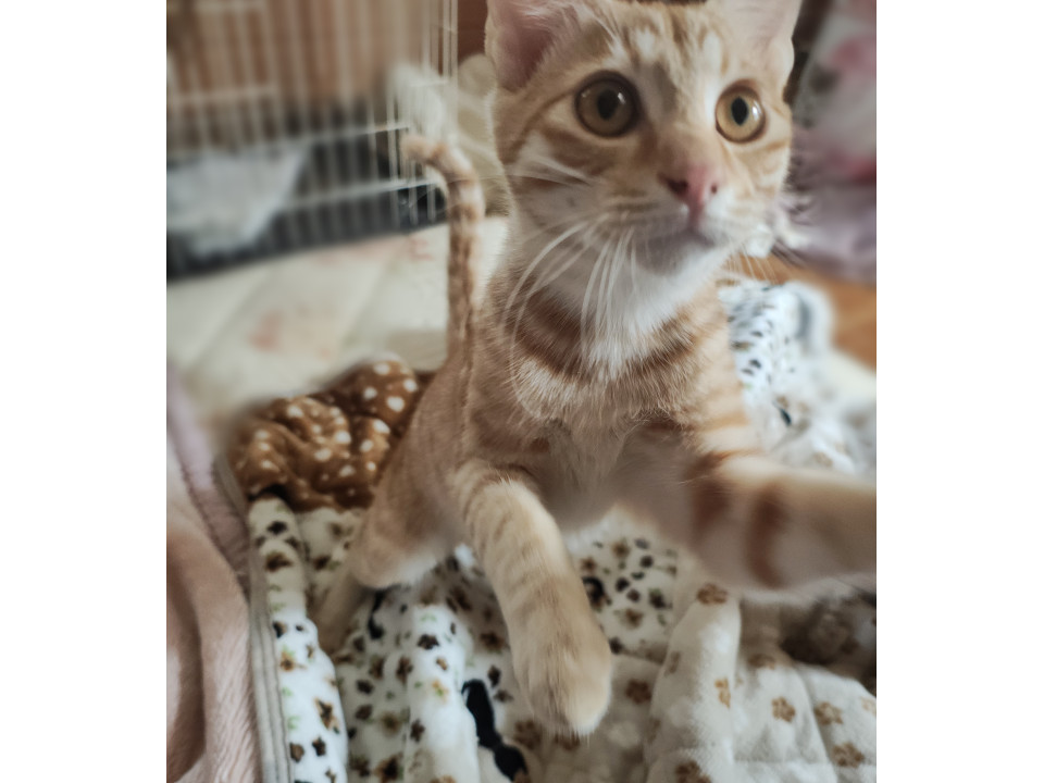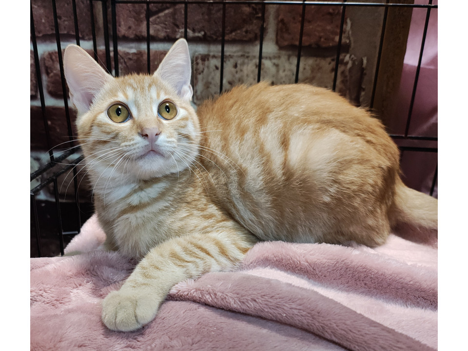 お耳が大きく、狐っぽさのある、可愛い茶トラの男の子。