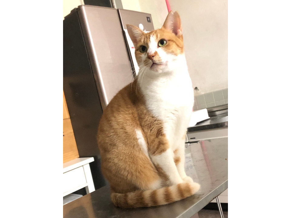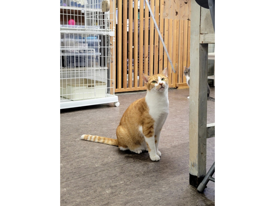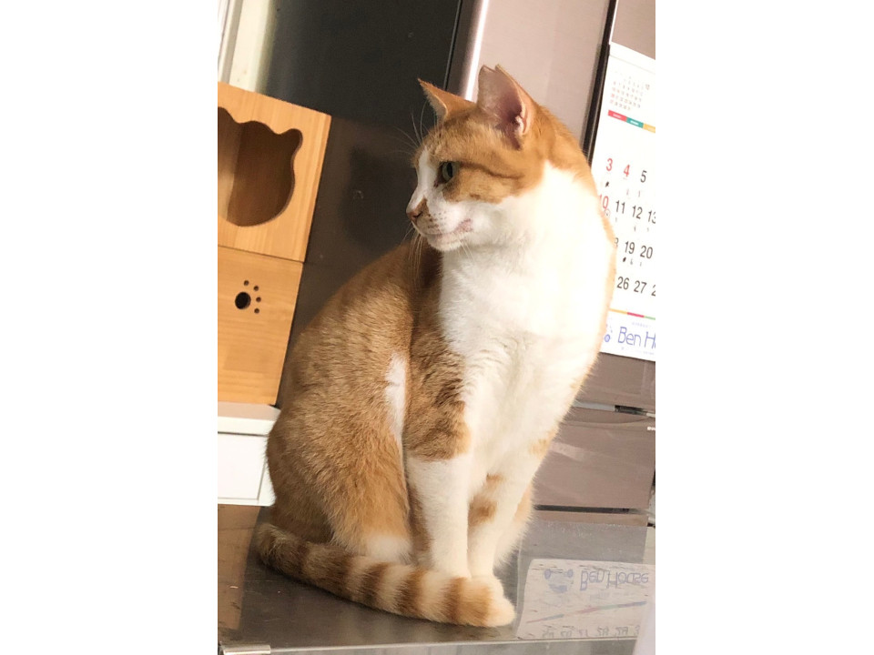 高いところが好きな、茶トラ白の女の子。