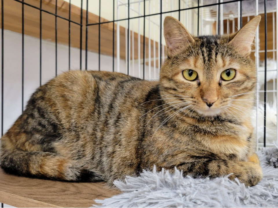 いつも微笑んでいるよう(に見える)可愛いお顔がチャームポイントの、きれいなムギワラ柄の女の子。