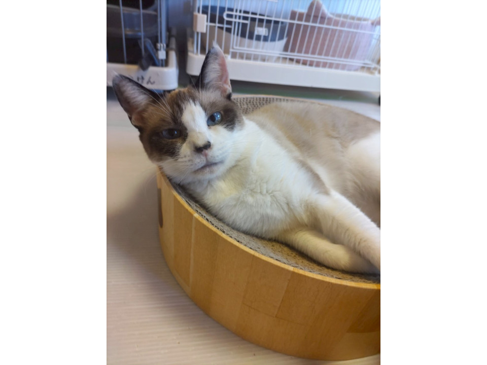 シャム系の毛色とブルーのお目めが魅力的な女の子。