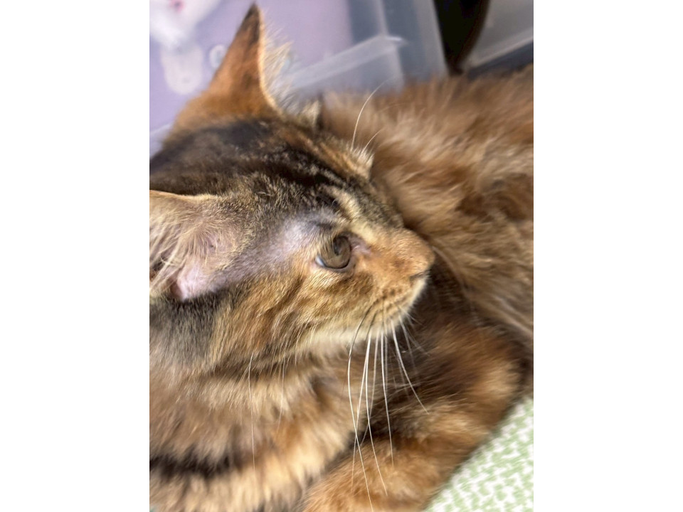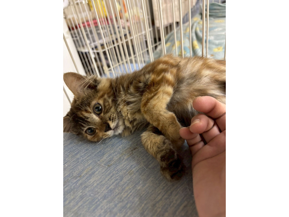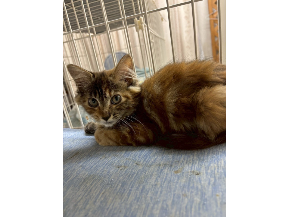珍しい「サビトラ」模様の、長毛気味の子猫ちゃんです。