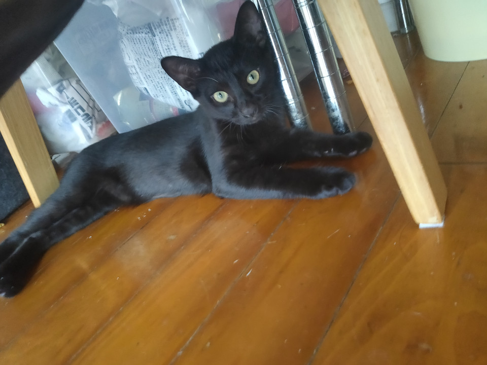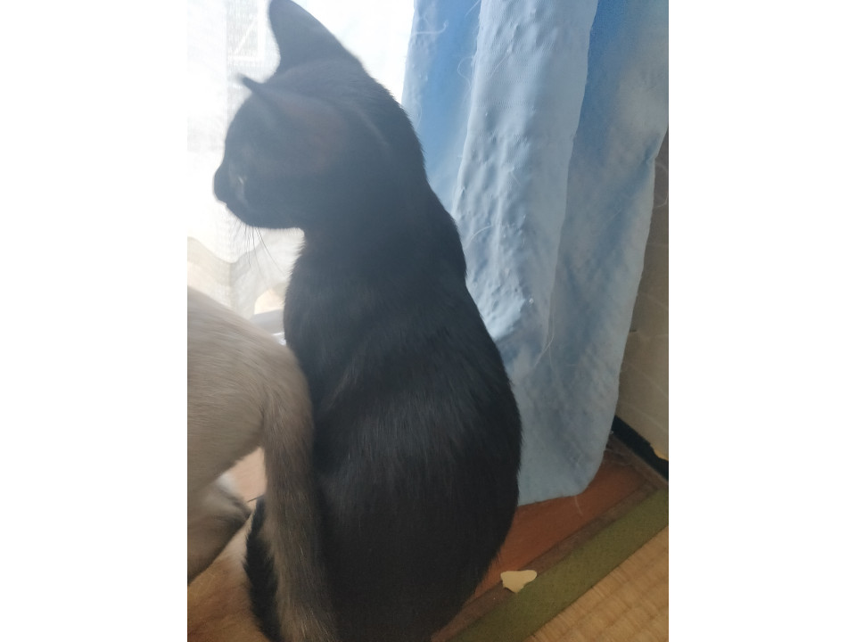 生後6ヶ月ほどで、まだ子供の猫のはずなのですが、年の割に体が大きいです(普通サイズの猫くらいになってます)。お父さん猫が大柄な猫だったので(太っているのででなく、体格がいい)、おそらくその血を引いてるからだと思います。一緒に生まれた女の子、サビ猫などは、年相応なサイズなのですが(普通の子猫。おそらくこちらは母猫からの遺伝)。