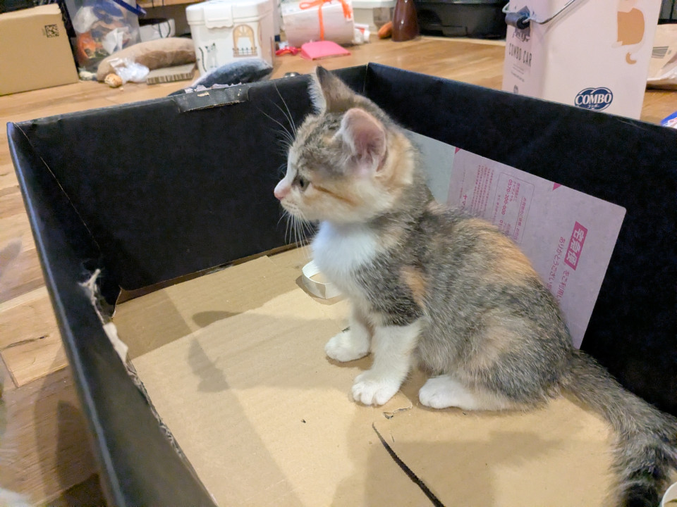 実家の車庫に野良おかあさんが子猫を産んで目がようやく開いたあたりに育児放棄して戻って来なくなりました。(もしかしたら事故にあったのかもしれません…)