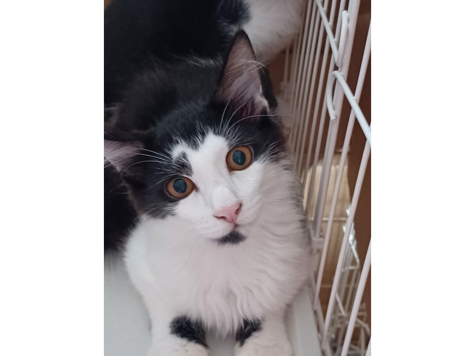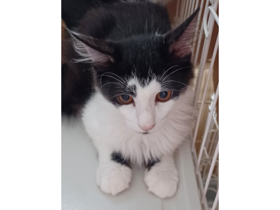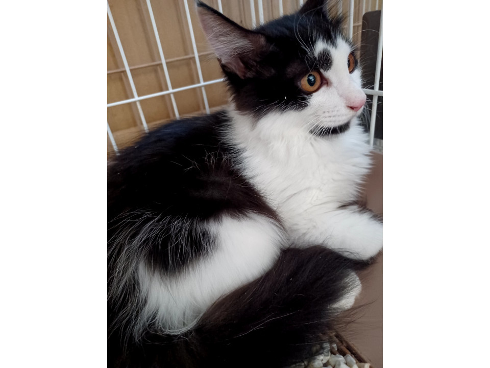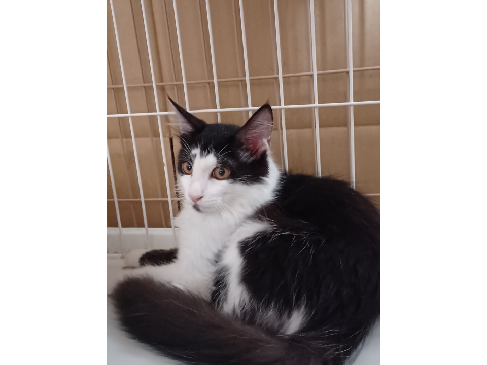 長毛の白黒 ふんわり長いしっぽ