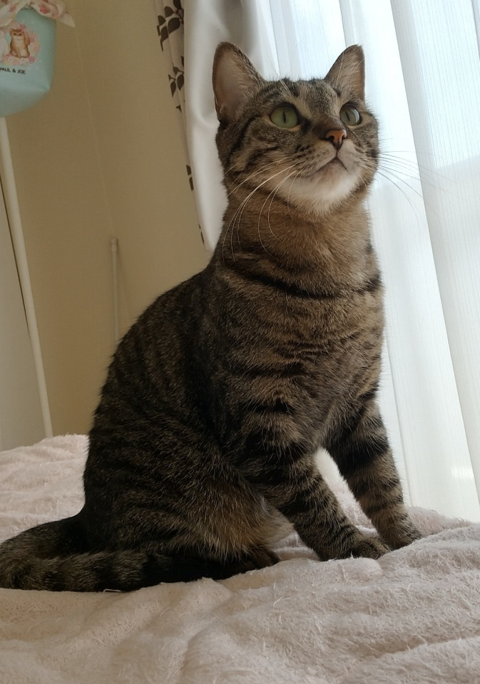 キャットタワーで寝ている時は触れます