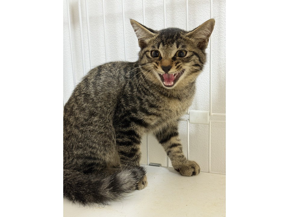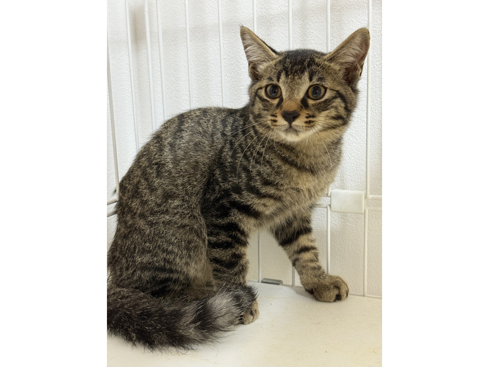黒多めのキジトラでワイルドさを兼ね備えており、カッコ可愛い系です。