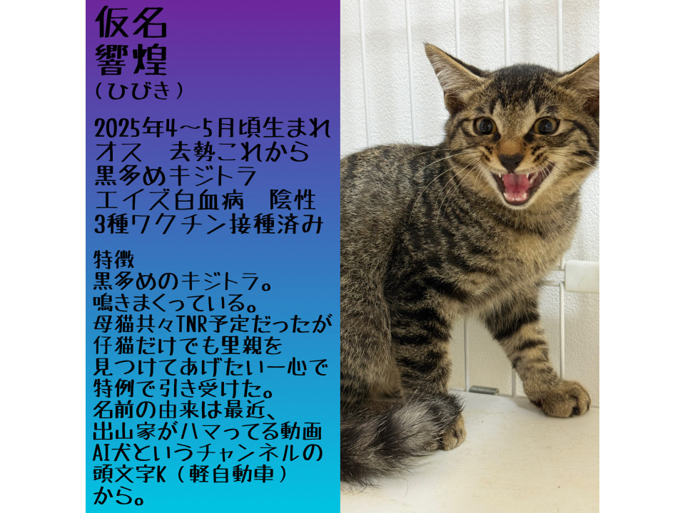※避妊去勢の兼ね合いでトライアル、譲渡は2025年10月後半以降になります。