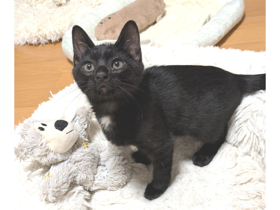 同じ月齢の子猫がいないので遊び相手に保護主がなっていますが、今はとにかく遊びたい盛りのヤンチャ坊主です。
