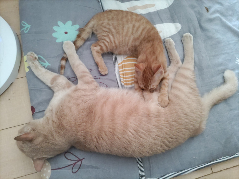 甘えん坊で、我が家の末っ子猫(男の子)のおっぱいを吸っています
