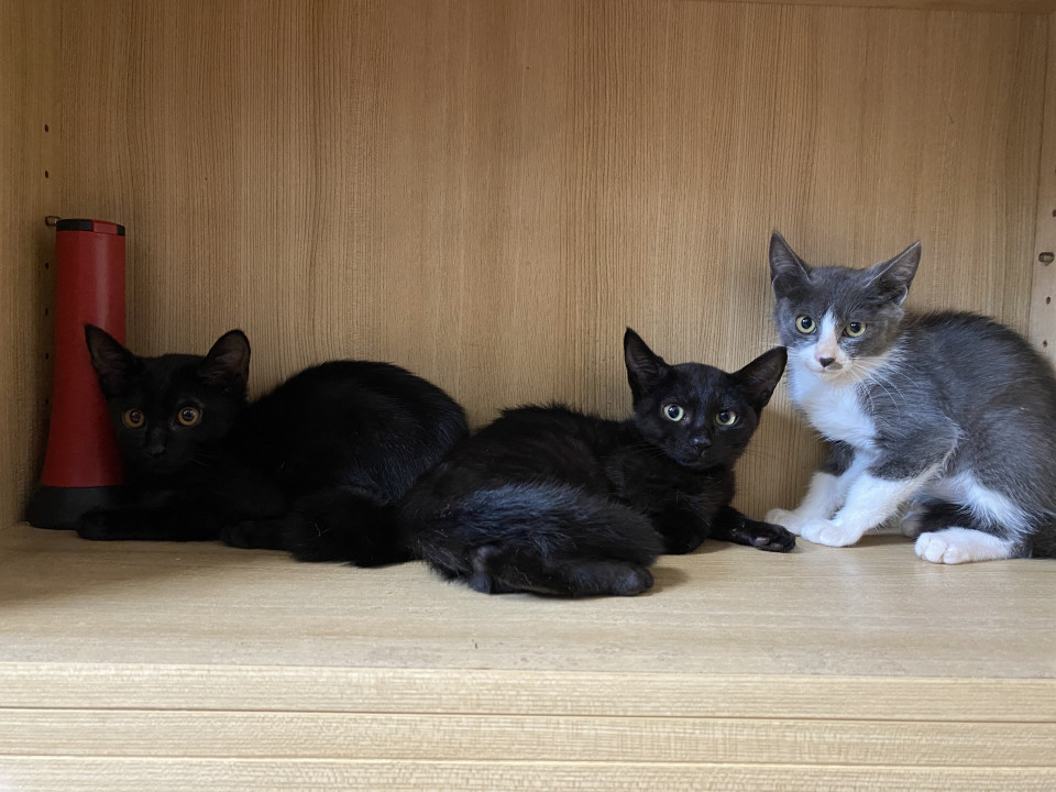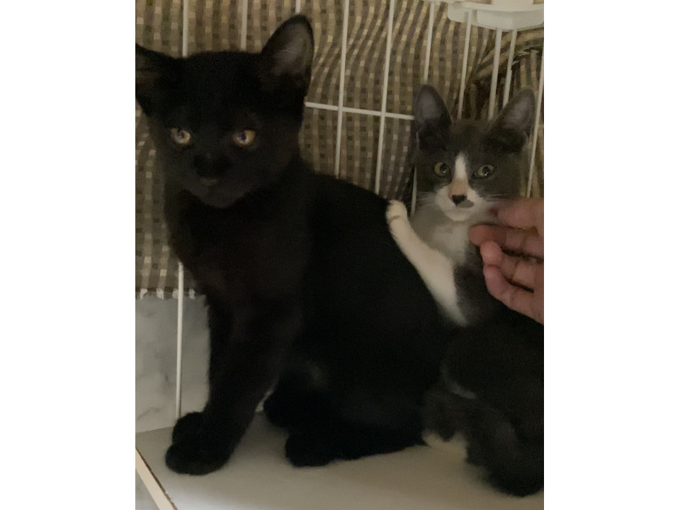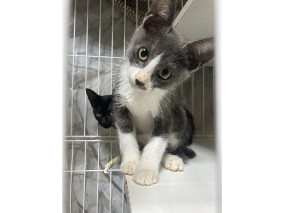 保護したばかりはビビリちゃんでしたが、今は人慣れしております。不思議な物を見ると首を傾げる仕草がとても可愛い。姉妹の黒猫と仲が良く、出来れば2匹一緒の譲渡を希望します。