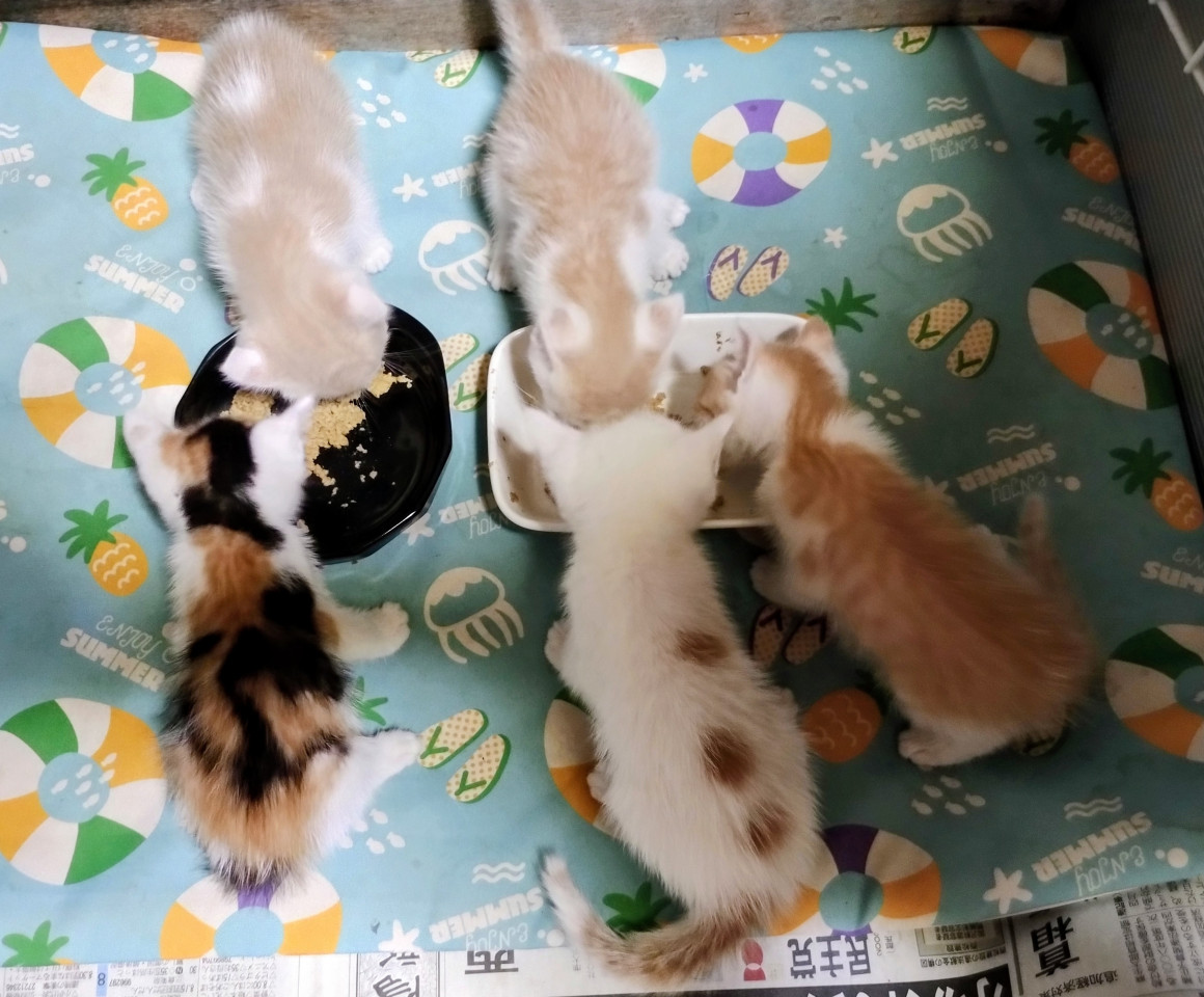 我が家に遊びに来ている野良猫さんが産んだ子です。8月27日に子猫5匹保護しました。